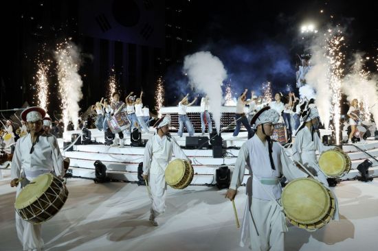 국민임명식 전 행사장에서는 각종 문화예술 공연이 펼쳐졌다. '해야' 노래에 맞춘 전통·현대 타악 길놀이, 풍물패와 퍼커션, 무용단의 공연, 광복 80년 기념 프로젝트 그룹 '투데이야'의 노래, 치어리딩 공연, 가수 이은미씨의 노래가 선보였다.