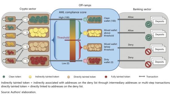 국제결제은행(BIS)의 신현송 조사국장 등은 최근 '암호화폐의 자금세탁방지(AML) 준수 접근법' 보고서를 통해 "암호화폐 단위나 잔액이 불법 활동과 연계됐을 가능성을 기반으로 'AML 준수 점수'를 만들어 은행 시스템과의 접점 즉, 현금화 시점에서 이를 참고하면 불법 활동으로 얻은 수익금의 유입을 차단할 수 있다"고 밝혔다.
