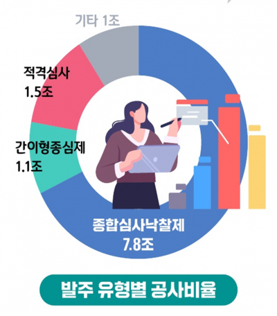 공사 부문은 종합심사낙찰제 7조1000억원(67건), 간이형 종합심사제 1조1000억원(54건), 적격심사제 1조2000억원 (234건), 기타 1조원(10건)이다.