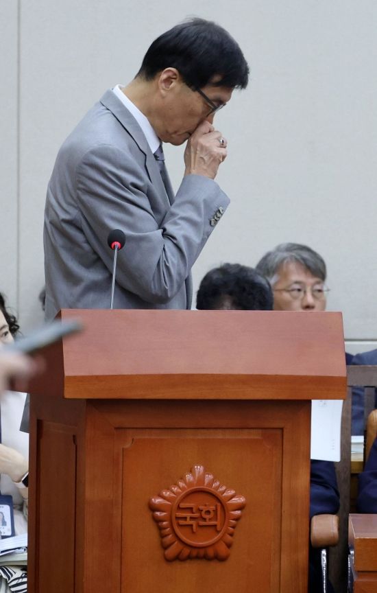이창용 한국은행 총재가 19일 국회에서 열린 기획재정위원회 전체회의에서 업무보고를 하고 있다.