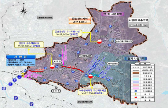 영산강유역환경청과 광주 북구청이 특별재난지역으로 선포된 북구 서방천 일대 침수 피해 재발 방지를 위해 하수도 정비 사업을 신속히 추진한다.
