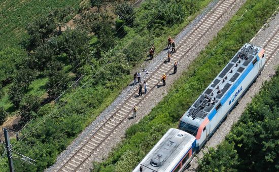무궁화호 열차가 선로 인근에서 작업 중이던 근로자 7명을 치는 사고가 발생한 19일 경북 청도군 화양읍 삼신리 청도소싸움 경기장 인근 경부선 철로에서 경찰과 소방, 코레일 등 관계자들이 사고 조사를 하고 있다. 연합뉴스
