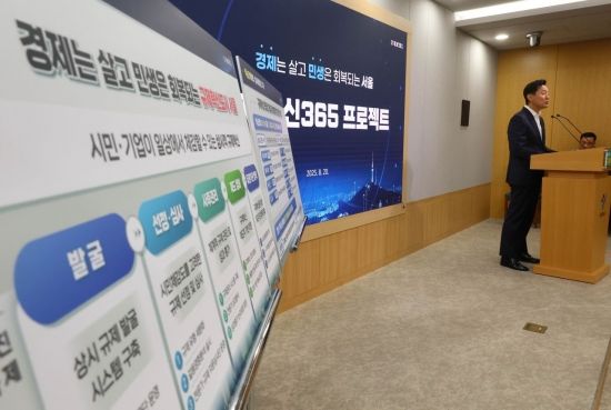 오세훈 서울시장이 20일 서울 중구 서울시청 브리핑룸에서 '규제혁신 365 프로젝트' 관련 기자설명회를 하고 있다.
