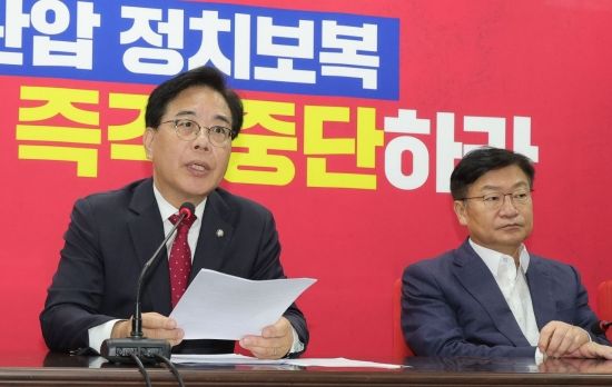 정점식 국민의힘 사무총장도 "압수수색 영장에서 압수할 물건은 본 건의 범죄사실과 관련한 당원명부라고 돼 있는데 영장 내 범죄사실은 정치자금법 위반과 알선수재다. 그 범죄사실 어디에도 특정 종교단체 교인들의 입당과 관련한 서술이 전혀 없다"며 "건진 법사 알선수재가 특정 종교단체 교인들의 우리 당 입당과 어떤 관련이 있겠냐"고 가세했다.