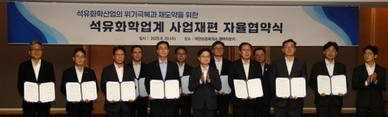 눈치싸움이 언급되는 건 업계에선 "할 만큼 했다"는 반응이 나오기 때문이다. 남정윤 한화솔루션 사장은 20일 서울 대한상공회의소에서 열린 석유화학산업 재도약 자율협약식 직후 취재진을 만나 "이미 일부 설비를 중단했다"며 추가 감축 여력은 사실상 없다는 입장을 우회적으로 밝혔다. DL과의 합작사인 여천NCC 일부 생산설비 가동을 중단한 것을 언급한 것이다. 최안섭 SK지오센트릭 사장도 대한유화와 NCC 통합이 논의 중이냐는 질문에 "지금은 할 얘기가 없다"고 선을 그었다. 행사에 참석한 허성우 GS칼텍스 부사장, 강길순 대한유화 사장, 정임주 HD현대케미칼 대표, 이영준 롯데케미칼 사장은 기자들의 질문에 침묵으로 일관했다.