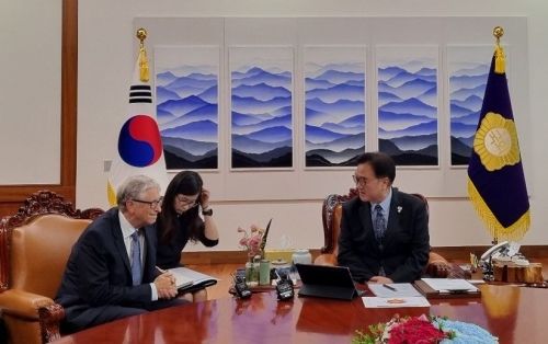 한국을 방문 중인 게이츠 이사장은 이날 오후 서울 여의도 본관 국회의장실을 찾아 우원식 국회의장과 접견하고 "게이츠 재단은 그동안 적은 예산으로 많은 생명을 살리는 등 현명한 일들을 해오고 있다. 대한민국이 기부를 해주신다면 우리도 많은 지원을 할 수 있을 것이라 생각한다"고 했다.