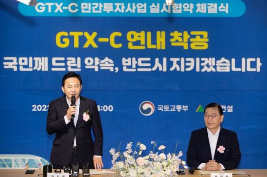 지난 2년간 부처 간 이견이 좁혀지지 않으면서 GTX-C 사업은 멈춰섰다. GTX-C 사업은 수도권 남북축을 관통하는 총사업비 4조6084억원 규모의 광역 교통사업이다. 경기도 양주시 덕정역에서 안산시 상록수역까지 총 86.5km를 대심도 고속철로 연결하는 것이 목표다. 14개 정거장 모두 일반 지하철로 갈아탈 수 있는 환승역으로 구성하는 등 수도권 외곽에 사는 거주민의 기대가 컸다. 원희룡 전 국토부 장관과 시공 컨소시엄 대표인 현대건설의 윤영준 당시 사장은 2023년 8월22일 실시협약을 체결하며 '연내 착공'을 공언한 바 있다.