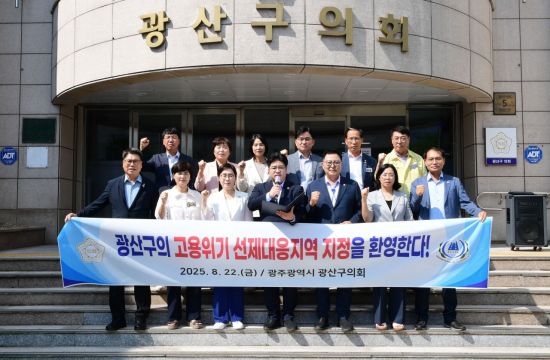 광주 광산구의회는 22일 광산구의 '고용 위기 선제대응지역' 지정과 관련해 성명서를 내고 환영의 뜻을 밝혔다. 의회는 지역경제 회복과 고용 안정을 위해 정부, 지자체, 기업, 노동계가 긴밀히 협력할 것을 촉구했다.