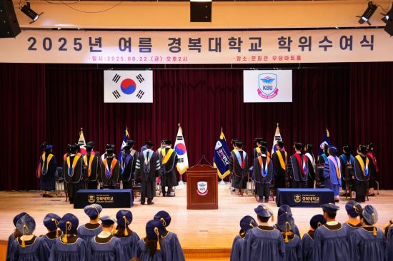경복대학교가 22일 남양주캠퍼스 우당아트홀에서 '2025학년도 여름 학위수여식'을 개최했다. 이날 학위수여식에는 졸업생 83명을 포함해 주요 보직자, 학과장, 교수진 등 대학 관계자들이 참석했다.