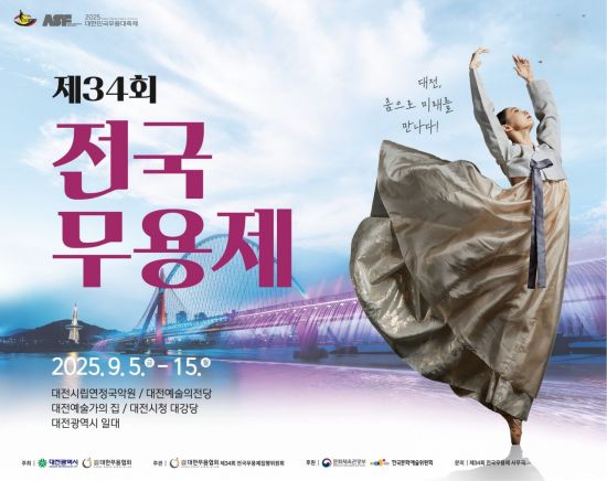 전국의 우수한 무용 예술을 한자리에서 경험할 수 있는 최고의 무대인 '제34회 전국무용제'가 오는 9월 5일 오후 5시 30분 대전시립미술관 분수 광장에서 화려한 막을 올린다.