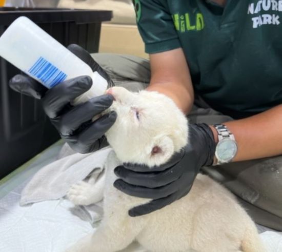 전근배 네이처파크 사육팀장은 매"현재 새끼 사자 3마리 모두 인공 포육(새끼를 먹여 기름) 상태"라며 "태어난 이후부터 24시간 돌보고 있다. 어미는 새끼를 낳고 돌보지 않는 상태이기 때문에 어떻게든 새끼를 살리기 위해 노력하고 있다"고 전했다.