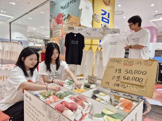 롯데백화점 부산본점 지하1층 시그니처 팝업존에서는 오는 31일까지 위트 있는 감성 의류 브랜드 '김씨네 과일' 팝업스토어가 진행된다.
