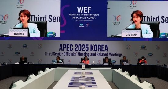 윤성미 APEC 고위관리위원회(SOM)의장이 12일 인천 송도 컨벤시아에서 개막한 아시아태평양경제협력체(APEC) 여성경제회의(WEF) 민관합동정책대회에서 'APEC 2025 우선관제'를 발표하고 있다. 2025.08.12 윤동주 기자