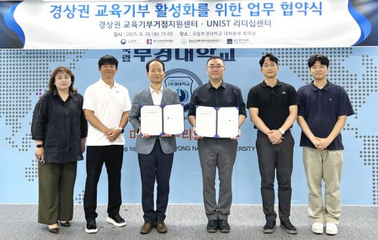 국립부경대학교 경상권 교육기부거점지원센터(센터장 이상길)는 26일 오후 대학본부 2층 회의실에서 울산과학기술원(UNIST) 리더십센터(센터장 최영도)와 교육기부 활성화를 위한 업무협약을 체결했다.