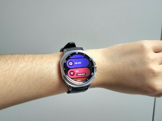 처음 박스를 열고 착용을 마무리해 이것저것 설정 과정을 마치기까지 걸린 시간은 10분 남짓. 착용할 손목을 고른 뒤, 각종 동의 절차까지 거쳤다. 착용 첫인상은 묵직했다. 기자가 착용한 모델은 46㎜ 클래식 버전으로, 스테인리스 스틸 소재에 물리베젤링이 달려 있다. 공식 무게는 63.5g. 성인 남성 사용자라면 안정적이라고 느낄 수도 있겠지만 상대적으로 손목이 가는 여성이라면 이 무게는 다소 부담이다. 두툼하고 존재감이 크다 보니 '패션 아이템'으로는 근사하지만 운동할 때 차고 뛰기에는 무게감이 걸린다는 얘기다. 반대로 알루미늄 소재의 스탠더드 모델은 40㎜ 30g, 44㎜ 34g 수준으로 클래식의 절반 무게에 불과하다. 운동이나 러닝용으로는 훨씬 부담이 덜하다.