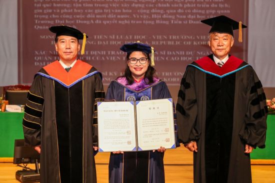 이해우 동아대 총장은 "응오티프엉란 총장님의 업적은 양국 우호 증진에도 큰 영향을 끼쳤다"며 "이번 학위 수여가 학술 교류와 한국-베트남 협력의 새로운 지평을 여는 출발점이 되길 기대한다"고 말했다.