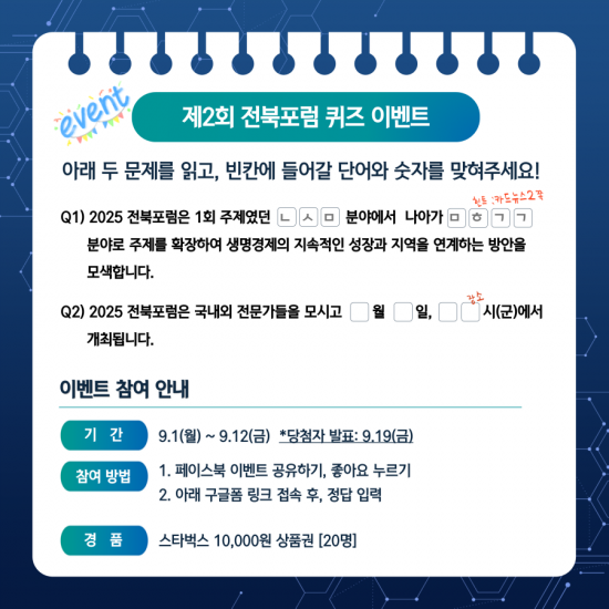 전북특별자치도는 '제2회 전북포럼'을 알리기 위해 SNS 퀴즈 이벤트를 진행한다고 1일 밝혔다.