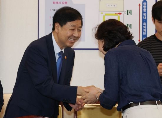 구윤철 경제부총리 겸 기획재정부 장관이 1일 서울 종로구 정부서울청사에서 열린 공공기관운영위원회에 참석, 위원들과 인사를 나누고 있다.
