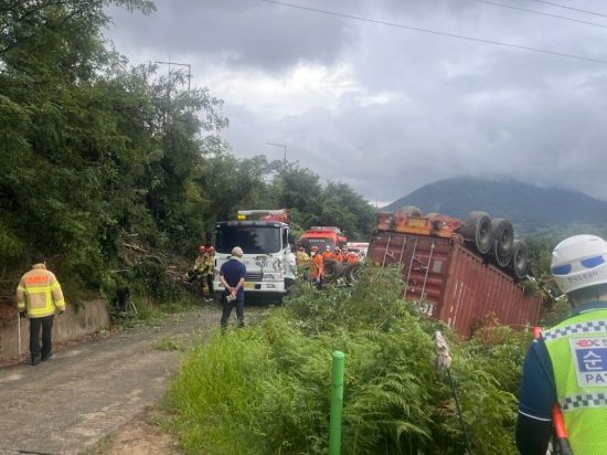 1일 오전 10시 18분께 경남 창원시 의창구 동읍 남해고속도로 부산 방면 창원분기점 인근을 지나던 트레일러가 도로 밖 비탈면으로 추락했다.