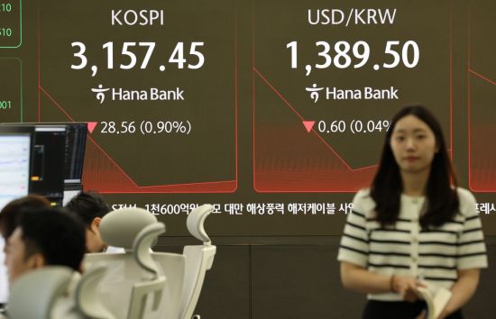 1일 하락 출발한 코스피지수가 장중 낙폭을 키우며 3130선에서 거래되고 있다.