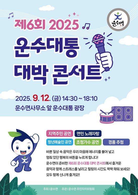 오는 12일 오후 2시 30분 경북 고령군 운수면사무소 앞 광장에서 '제6회 2025 운수대통 대박콘서트'가 열린다.