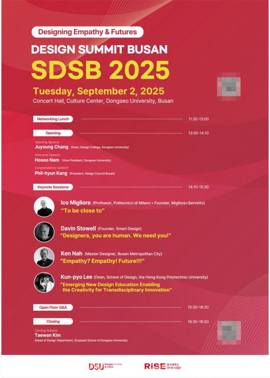 이번 심포지엄은 'Designing Empathy&Futures'를 주제로, 글로벌 디자인 리더들을 초청해 부산 디자인의 미래를 이끌어갈 차세대 디자이너들과 교류하는 장을 마련한다.