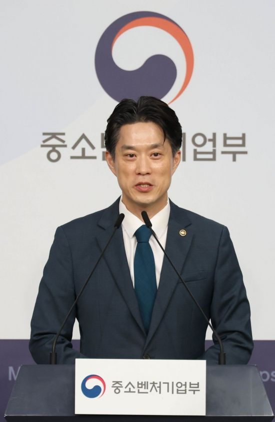 노용석 중소벤처기업부 차관이 2일 서울 종로구 정부서울청사 별관에서 2026년 중기부 예산안 관련 브리핑을 하고 있다.