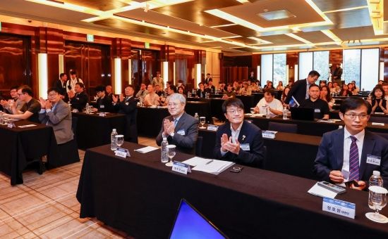 장범식 아시아경제 대표(오른쪽 세 번째)와 박주민 국회 보건복지위원장(오른쪽 두 번째)을 비롯한 참석자들이 3일 서울 중구 웨스틴조선호텔에서 아시아경제 주최로 열린 '2025 굿브레인 콘퍼런스'에서 박수 치고 있다.