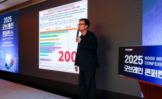 김병규 연세대학교 경영학과 교수가 3일 서울 중구 웨스틴조선호텔에서 아시아경제 주최로 열린 '2025 굿브레인 콘퍼런스'에 참석해 ‘알고리즘 소비와 생각의 길’이란 주제로 특별강연 하고 있다.