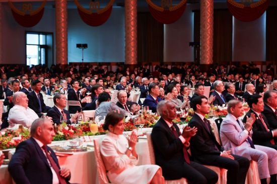 김정은 북한 국무위원장은 이날 시 국가주석, 블라디미르 푸틴 러시아 대통령과 나란히 걸으며 리셉션장에 입장했다. 시 주석이 가운데에 섰고, 좌우에 김 위원장과 푸틴 대통령이 함께 걸었다. 이날 리셉션에는 김 위원장의 여동생인 김여정 노동당 부부장도 참석했다. CNN에 따르면 시 주석은 이 자리에서 세계 26개국 정상들과 오찬을 가졌다.