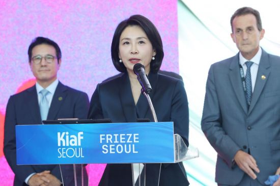 김 여사는 "최근 K컬처의 위상이 더욱 높아지면서, 전국의 미술관이나 갤러리에도 외국인 관람객이 대폭 늘었다"면서 "세계적인 갤러리와 재능 있는 작가들이 한데 모여 빚어내는 예술의 향연이 서울을 더욱 활기차고 매력적인 도시로 만들어 줄 것"이라며 키아프·프리즈 서울 개막행사를 격려했다.