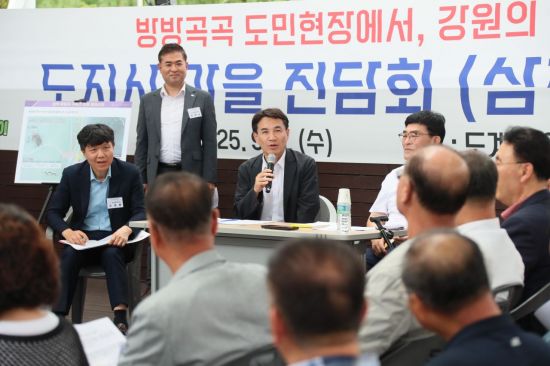 김진태 강원특별자치도지사는 3일 삼척시 도계읍에 위치한 조기폐광지역 경제진흥사업 추진 현장을 방문해 향후 사업계획을 점검하고 주민들과 소통하는 시간을 가졌다.