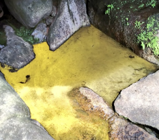 최근 일본 후쿠시마민유신문에 따르면 후쿠야마현 혼구시 이와카쿠산 이와카쿠지 경내의 샘물에서 '금화수'(金花水)라고 불리는 현상이 나타났다.