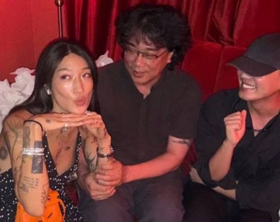 3일 DJ 페기 구는 인스타그램 스토리에 "Fav director! (가장 좋아하는 감독) 봉 감독님 알럽"이라는 글과 함께 한 장의 사진을 올렸다. 사진 속 페기 구는 봉준호 감독 옆에 앉아 꽃받침 포즈를 하고 있다. 봉준호 감독 옆에는 유아인으로 보이는 남성이 모자를 쓴 채 미소를 짓고 있다.