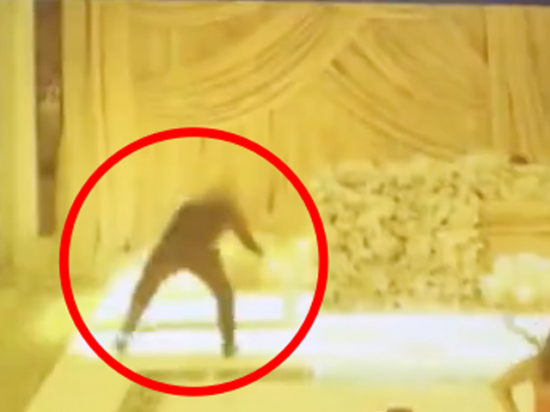 당일 폐쇄회로(CC)TV 영상을 보면 결혼식 피로연이 한창이던 행사장에 검은 옷을 입은 남성이 등장했다. 이 남성이 피로연장을 자연스럽게 돌아다니며 종업원에게 술을 주문하는 등 하객처럼 행동하는 장면이 담겼다.
