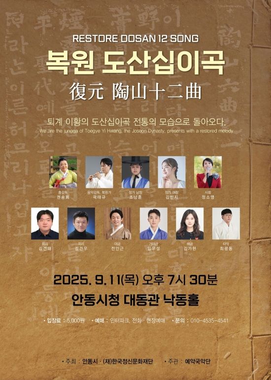 김건태 단장은 "도산십이곡은 지금까지 글로만 전해졌지만, 이번 공연을 통해 국악의 선율로 복원할 수 있게 됐다"며 "지역을 넘어 전국적으로도 문화적 울림을 전할 수 있는 뜻깊은 무대가 될 것"이라고 말했다.