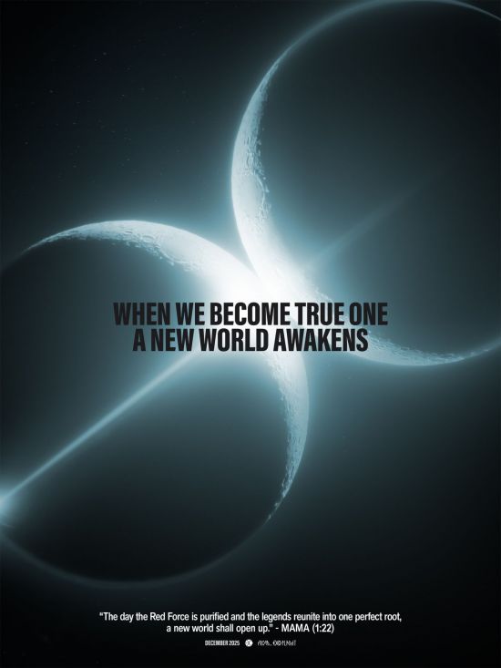 이미지에는 "WHEN WE BECOME TRUE ONE, A NEW WORLD AWAKENS(진정한 하나가 되는 날, 새로운 세계가 열린다)"라는 글귀도 포함됐다. 이는 2012년 데뷔 당시 'K팝 세계관' 붐을 일으킨 엑소의 세계관과 연결되는 내용이다.