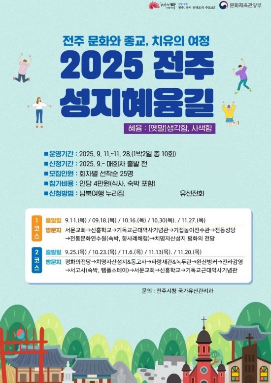 한편 '전주 성지혜윰길' 프로그램은 문화체육관광부 소관 서부 내륙권 관광 진흥 사업의 일환으로 추진되며, 올해에 이어 내년에도 운영될 예정이다.
