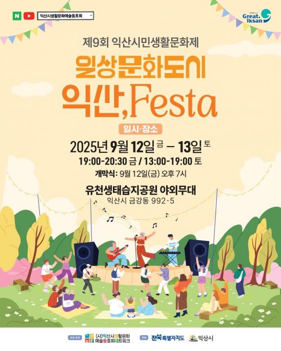 전북 익산시는 오는 12~13일 유천생태습지 야외무대에서 제9회 익산시민생활문화제-일상문화도시 익산, 페스타(Festa)'가 열린다고 9일 밝혔다.