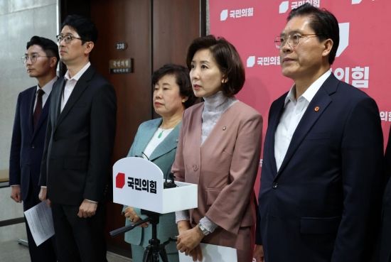 나경원 국민의힘 의원은 이날 오후 국회 본관에서 곽규택·주진우·송석준·박준태·조배숙 의원 등 국민의힘 법사위원들과 기자회견을 열고 "이재명 정권 들어 (정부·여당이) 속도감 있게 검찰 해체와 물타기용 대법관 증원을 비롯한 사법 장악에 올인하고 있다"고 강조했다.