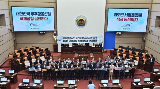 도의회는 9일 열린 제426회 임시회 제1차 본회의 직후 '사천공항 국제공항 승격 국가계획 반영 촉구 성명서'를 발표했다.