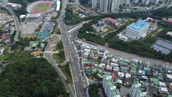기존에는 아파트에서 동해방향 국도7호선으로 진입하거나, 동해방향에서 운동장 쪽으로 진입하려면 불편한 경로를 선택해야 했지만, 이제는 신호체계가 갖춰진 평면 교차로와 회전교차로를 통해 자연스럽고 안전하게 차량을 흐르게 할 수 있게 됐다.