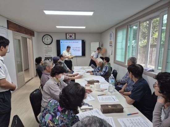 지난 9일 열린 설명회에서는 시설물 개선사항에 대한 설명과 더불어 '어르신 보행자 도로 횡단 5원칙' 등 교통안전 수칙에 대해 교육했다.