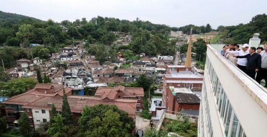 오세훈 서울시장이 9일 서울 노원구 백사마을 방문, 철거 상황을 점검하고 있다. 서울의 마지막 판자촌이라 불리는 백사마을은 12월 철거를 완료하고 2029년 입주를 목표로 하고 있다. 2025.09.09 윤동주 기자