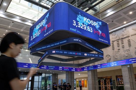 코스피 지수가 전 거래일 보다 22.07포인트 오른 3336.60으로 장을 시작하며 이틀 연속 사상최고치를 경신한 11일 서울 여의도 한국거래소 전광판에 코스피 지수가 표시돼 있다.
