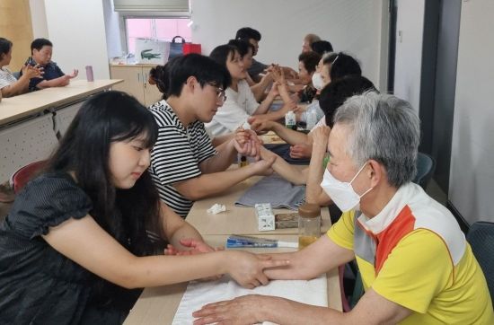 학생들은 방학 기간 전문가에게 손마사지 기법을 배우고, 이를 바탕으로 총 4회에 걸쳐 어르신들에게 정서적 이완 프로그램을 제공했다.