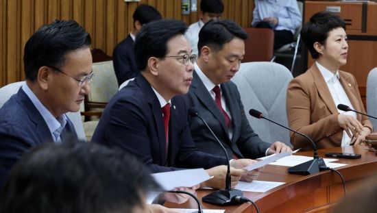 송언석 국민의힘 원내대표가 12일 국회에서 열린 원내대책회의에서 발언하고 있다.