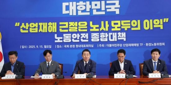 김병기 더불어민주당 원내대표가 15일 국회에서 열린 산업재해예방TF 중대재해 예방을 위한 노동안전 종합대책 발표 당정협의에서 발언하고 있다.