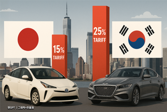 반면 한국은 지난 7월 말 미국과 큰 틀의 무역 합의에는 도달했으나 3500억달러 규모의 대미 투자 세부안을 놓고 이견을 좁히지 못해 여전히 한국산 자동차에 25% 관세를 적용받고 있다. 미국은 직접 투자 확대 등을 요구하고 있으며, 합의가 이뤄져야만 한국산 자동차 관세를 15%로 인하하겠다는 입장을 고수하는 상황이다. 이로 인해 일본 업체와 경쟁하는 현대차그룹 등 국내 기업은 미국 시장에서 불리한 위치에 놓이게 됐다.