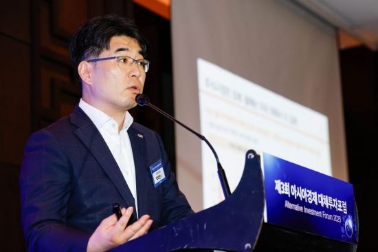 박희찬 미래에셋증권 리서치센터장이 16일 서울 여의도 콘래드호텔에서 열린 '제3회 아시아경제 대체투자포럼'에 참석해 ‘글로벌 및 한국의 산업구조 대변환: 대체투자자의 리스크와 기회’란 주제로 강연 하고 있다.